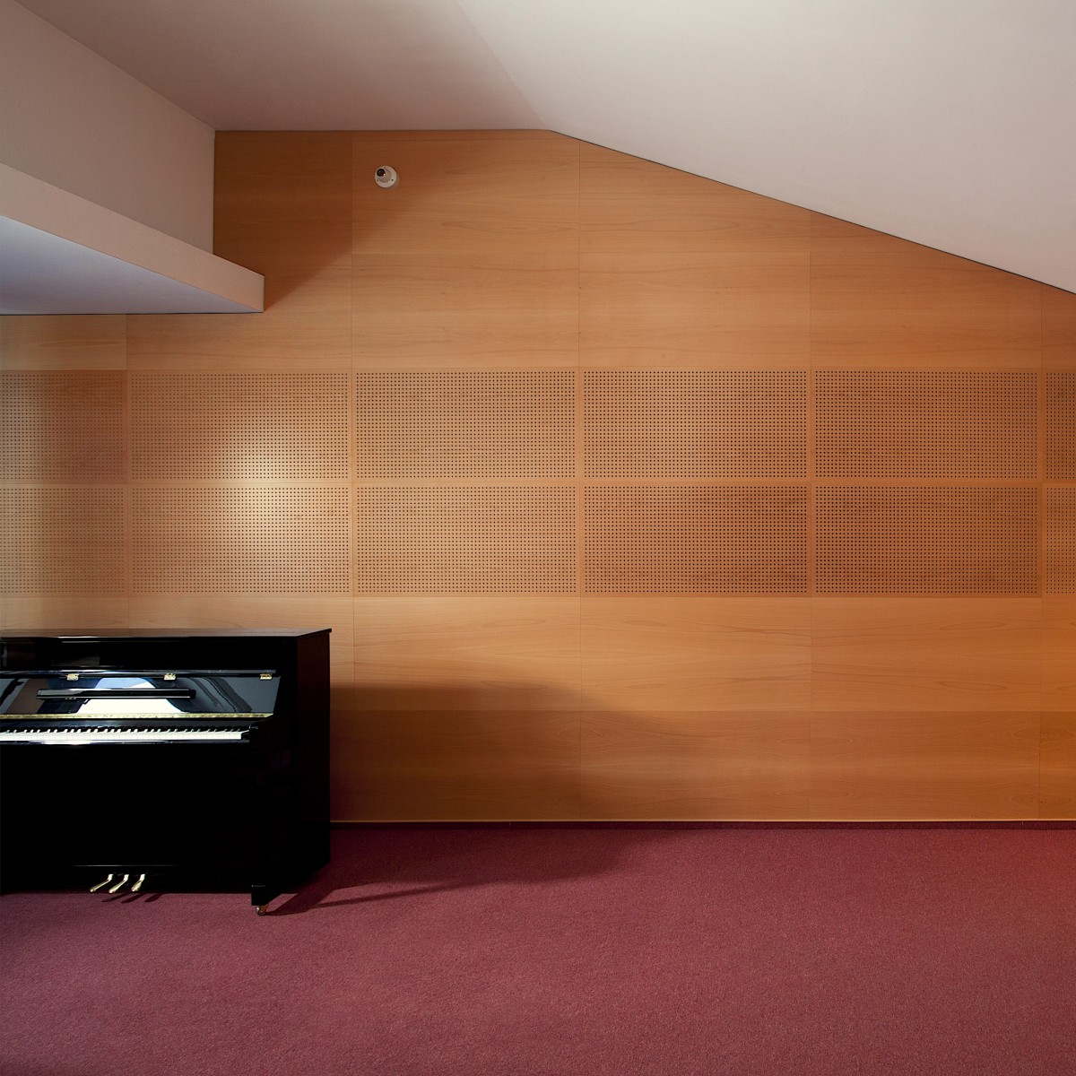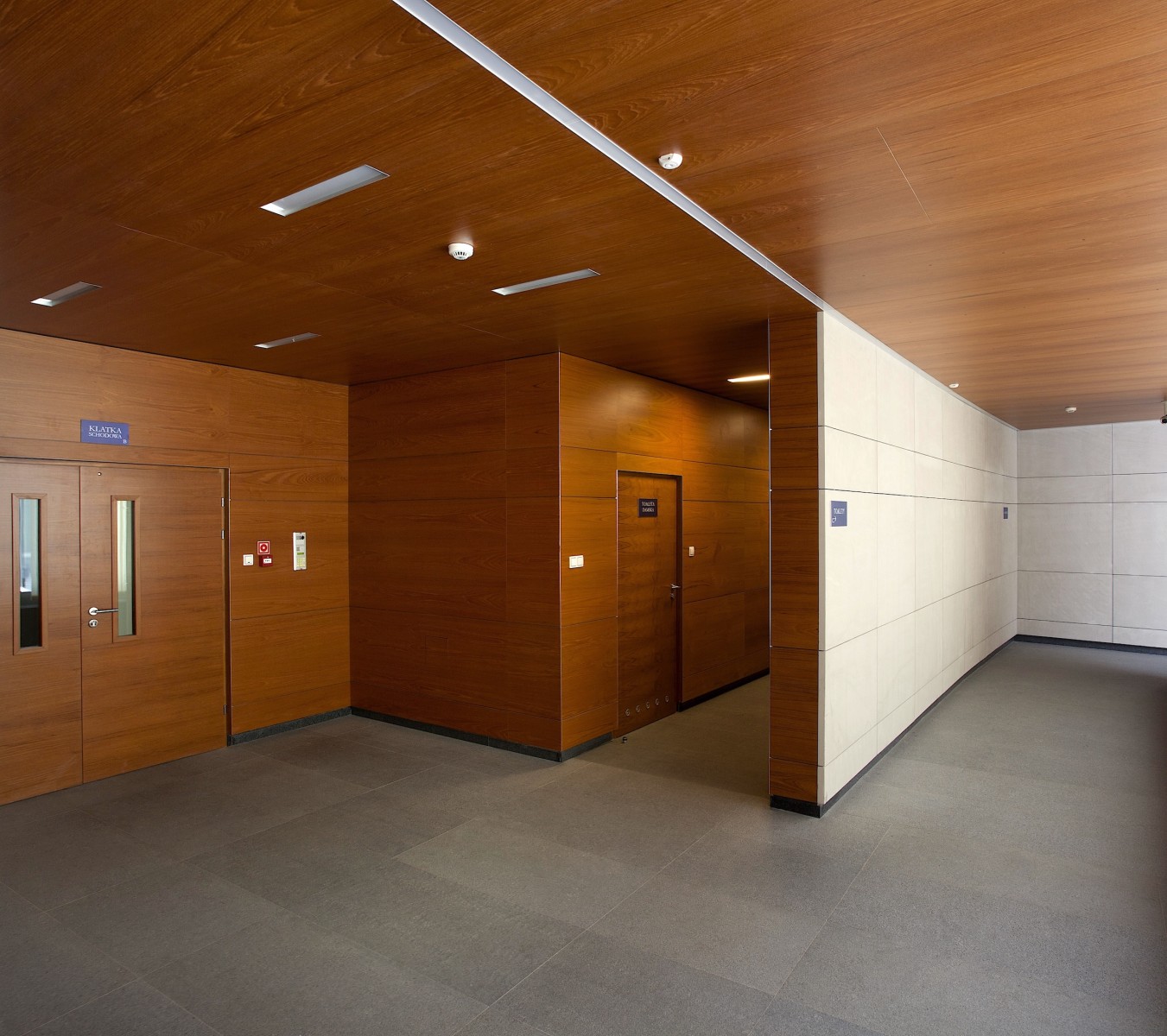 | Oświęcim | 2011 | okładziny ścienne i sufity podwieszane, hol, aule | okleina modyfikowana, brzoza gemini, perforacja PH8 |